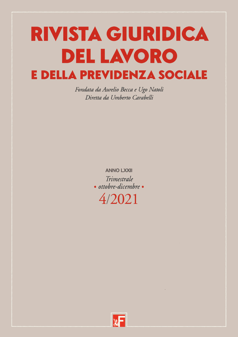 Rivista giuridica del lavoro e della previdenza sociale. Vol. 4: Ottobre-dicembre – Libro – Futura Editrice